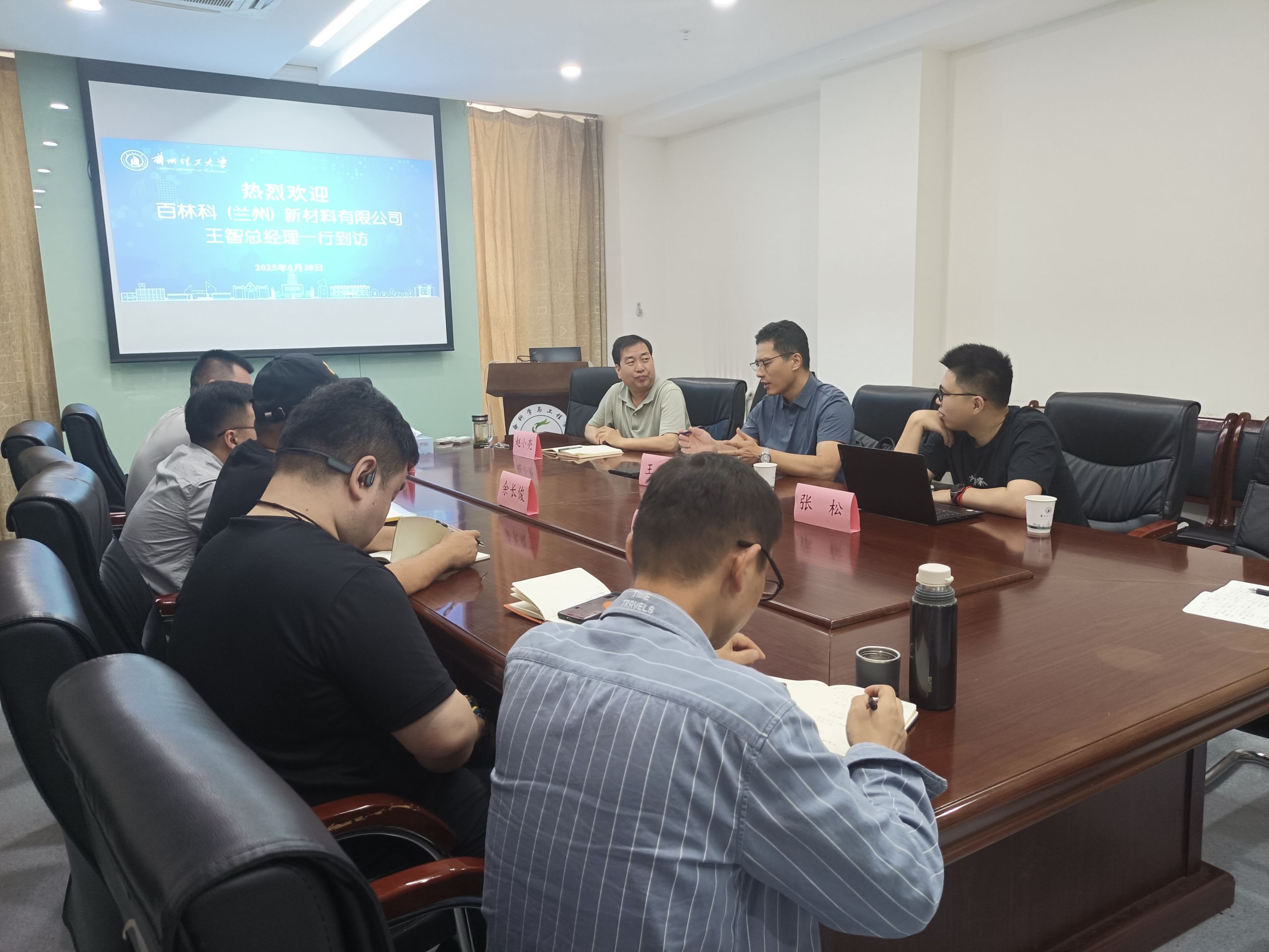 6月20日上午,百林科(兰州)新材料有限公司总经理王智、研发总监张松一行到访生命科学与工程学院。学院青年教师代表田辉、余长俊、成斌、王克荣和石任杰参加座谈,学院副院长赵小亮主持座谈会。