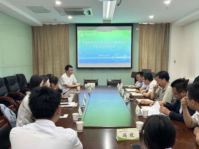 6月20日上午,生命科学与工程学院在图书馆北塔607会议室举行2025届毕业生代表座谈会。学院党政领导班子成员、毕业生辅导员及本硕毕业生代表围绕人才培养、学科建设、教育管理等展开交流。会议由学院党委副书记王亚伟主持。