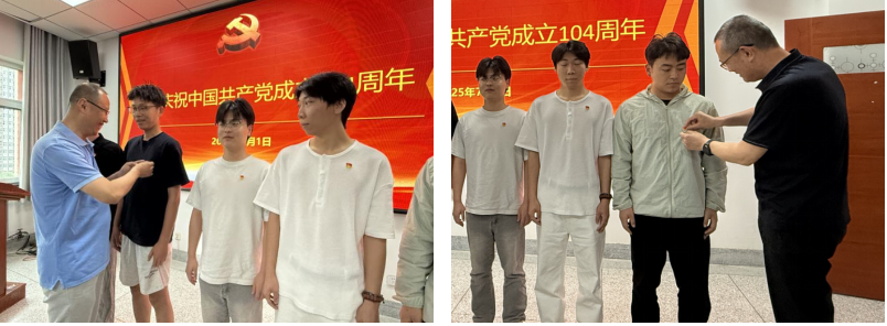 活动在庄严的重温入党誓词仪式中拉开序幕,全体党员面向党旗庄严宣誓,表达对党的忠诚与热爱。随后,学院党委书记和院长为新发展的党员佩戴党员徽章,勉励他们牢记初心使命,发挥先锋模范作用。