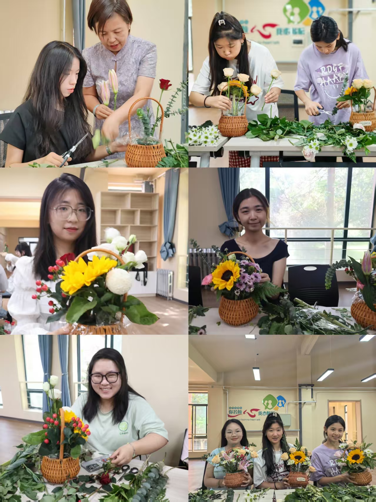 正值期末复习考试关键期,活动精准聚焦学生“压力叠加期”需求,精心设计“听花语”“插花疗愈”“分享时间”三个沉浸式体验环节,引领同学们步入花艺疗愈之境。“听花语”环节,正念冥想帮助同学们暂时忘掉烦心事,只关注眼前的一枝一叶,一花一世界。蒋倩老师引导同学们运用五感去沉浸式感受各类花材的生命力与独特美感,学习如何通过鲜花表达内心细微的情感世界。“插花疗愈”环节,鼓励同学们自由创作。一篮篮独一无二的花艺作品,宛如一页页鲜活的“心情日记”,无声地完成心理修复与情绪释放。在“分享时间”,不少同学主动分享自己作品背后的故事与感悟。2022级自动化专业马思慧同学提到,看着自己亲手完成的作品,即使不够完美,也充满了成就感。一束束亲手创作的花艺,不仅是为备考学子特制的“减压妙方”,更是盛放心灵的温暖“容器”。