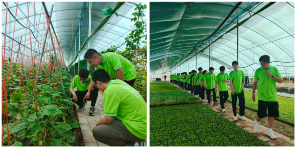 活动的最后一站,大学生党员们参观了五家乡高原夏菜种植基地。一排排现代化的农业大棚里,小乳瓜、水果西芹、普罗旺斯西红柿等高品质蔬菜长势喜人。大学生们亲眼见证了乡村振兴战略给农村带来的巨大变化,深切感受到这片土地上蓬勃发展的生机与活力。“这里生长的不仅是蔬菜,更是中国乡村破土而出的未来!”大学生党员罗千千在参观后激动地说道。