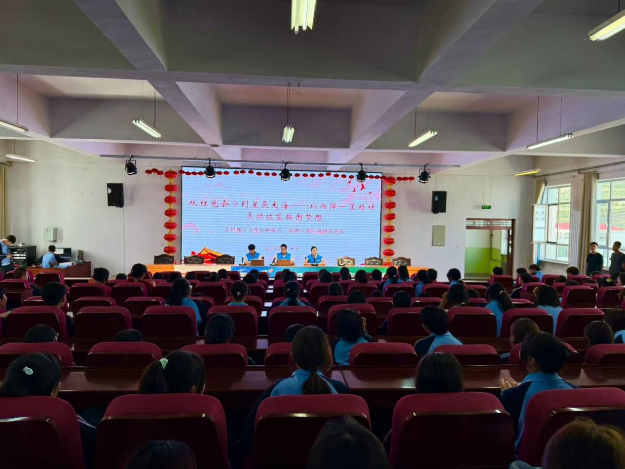 为弘扬“两弹一星”精神,引导青年学子将个人成长融入国家发展、以技能报国践行青春担当。近日,机电工程学院红柳星火“两弹一星”精神宣讲团走进会宁县高级职业中学,用一场满载历史温度与时代共鸣的宣讲,为职教学子铺展精神画卷,点燃“技能报国”的青春梦想。