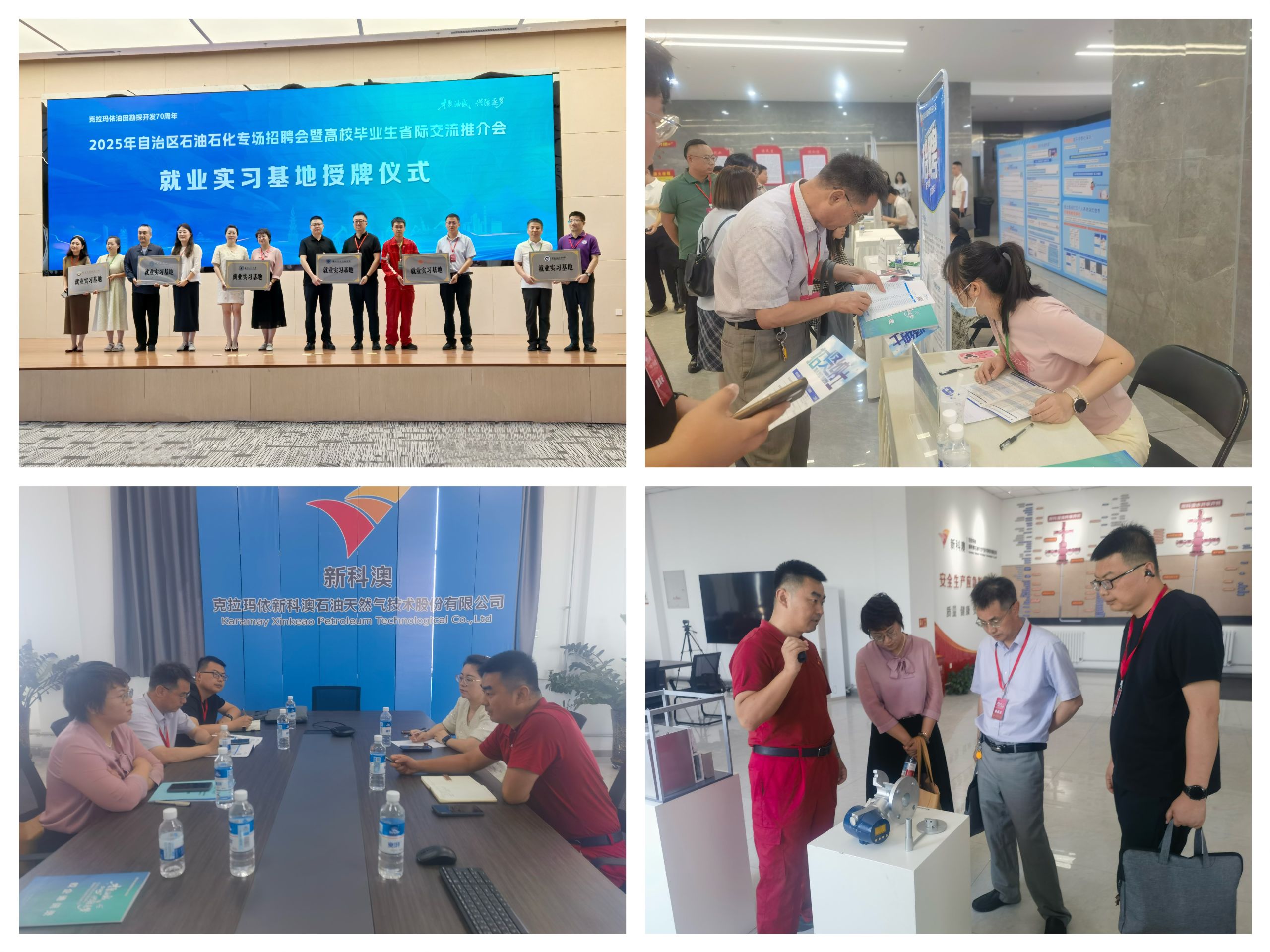 学校参加了自治区人社厅、自治区教育厅、克拉玛依市人民政府主办的“才聚油城·兴疆筑梦”2025年自治区石油石化专场招聘会暨高校毕业生省际交流推介会活动。学校就业中心被授予“克拉玛依市就业宣传形象大使”证书。活动期间,学校与克拉玛依新科澳石油天然气技术股份有限公司达成就业实习战略合作,并与西部中圆石油科技公司、新疆敦华绿碳技术公司以及克拉玛依精诚电子公司等二十余个企业进行深度对接和交流。