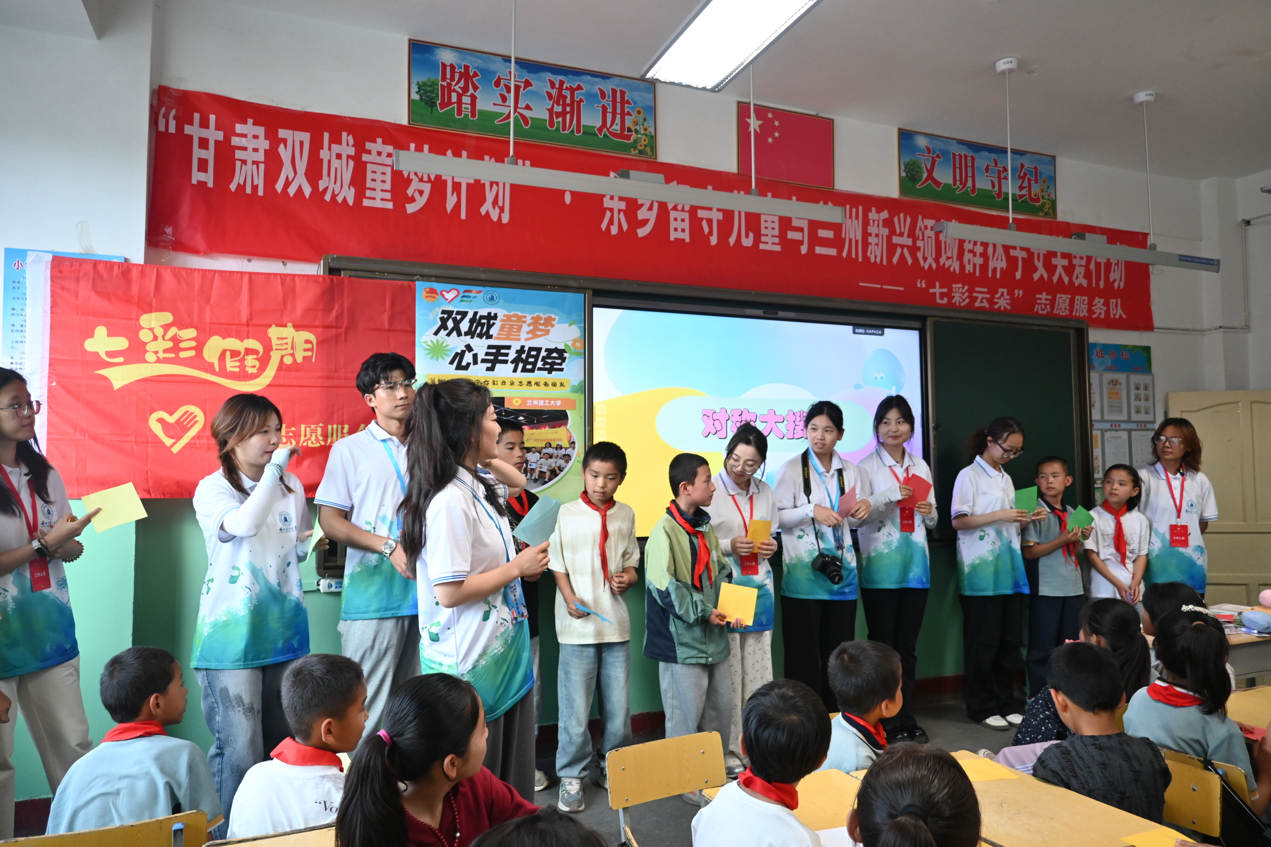 为深入践行乡村振兴战略,关爱留守儿童成长,铸牢中华民族共同体意识,兰州理工大学研究生会与学生会联合组建“七彩云朵”志愿服务团,近日赴东乡族自治县开展暑期社会实践。服务团深入锁南民族小学、锁南镇城南社区及布楞沟村,以青春智慧与热忱服务绘就乡村振兴新图景。