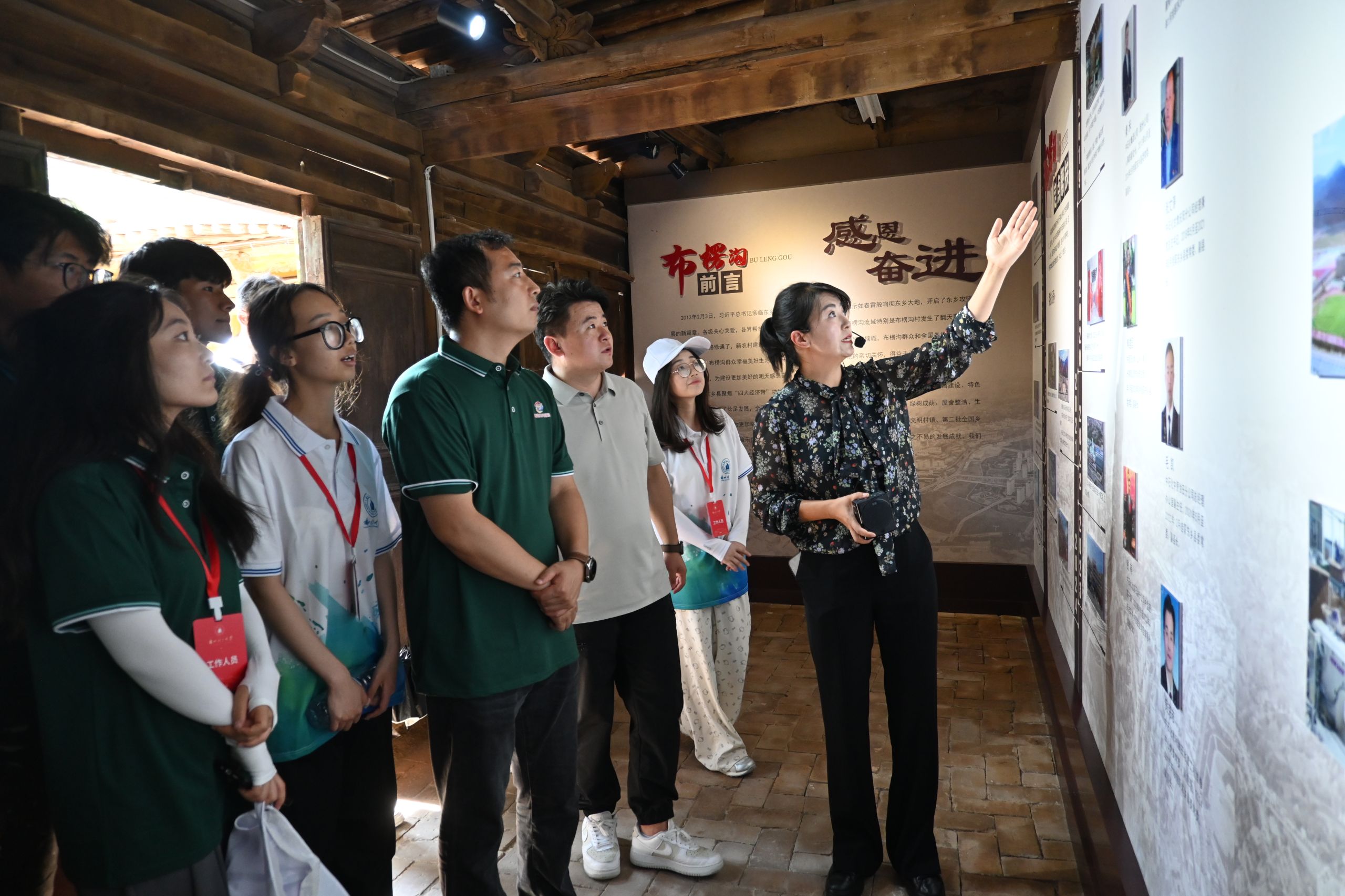 走进布楞沟村,村史馆内景象令人感慨:斑驳的老油灯与崭新的光伏板并置,无声诉说着从煤油照明到清洁能源的历史性跨越。馆藏实物与影像串联起村庄从闭塞走向通达、从贫困奔向小康的历程。在农户访谈中,村民和村干部分享了生活巨变:“2014年公路通到了家门口”,“2017年翻修的新房宽敞又亮堂”。文旅局同志介绍,蓬勃发展的红色旅游有效带动了就业增收和教育升学率提升,未来将联动周边产业,实现“一业兴、百业旺”,让布楞沟的振兴之路越走越宽广。青年志愿者的脚步穿行于村落街巷,在柴米油盐的烟火气中,亲身感受着乡村振兴带来的幸福温度。