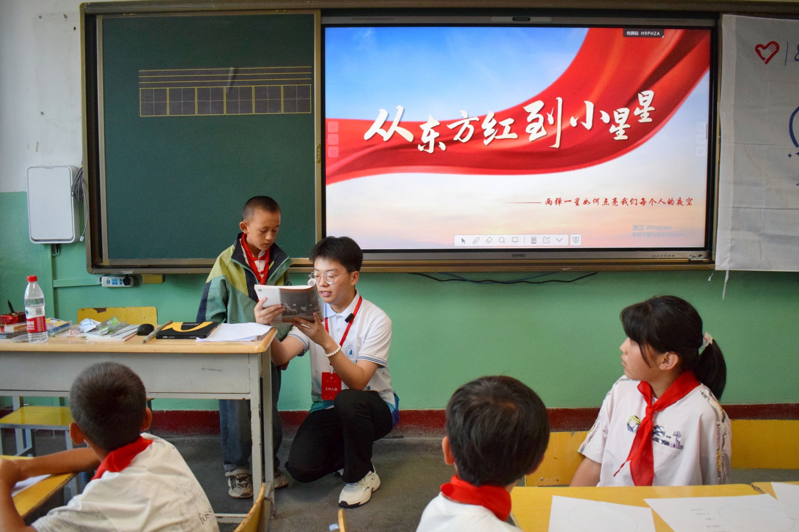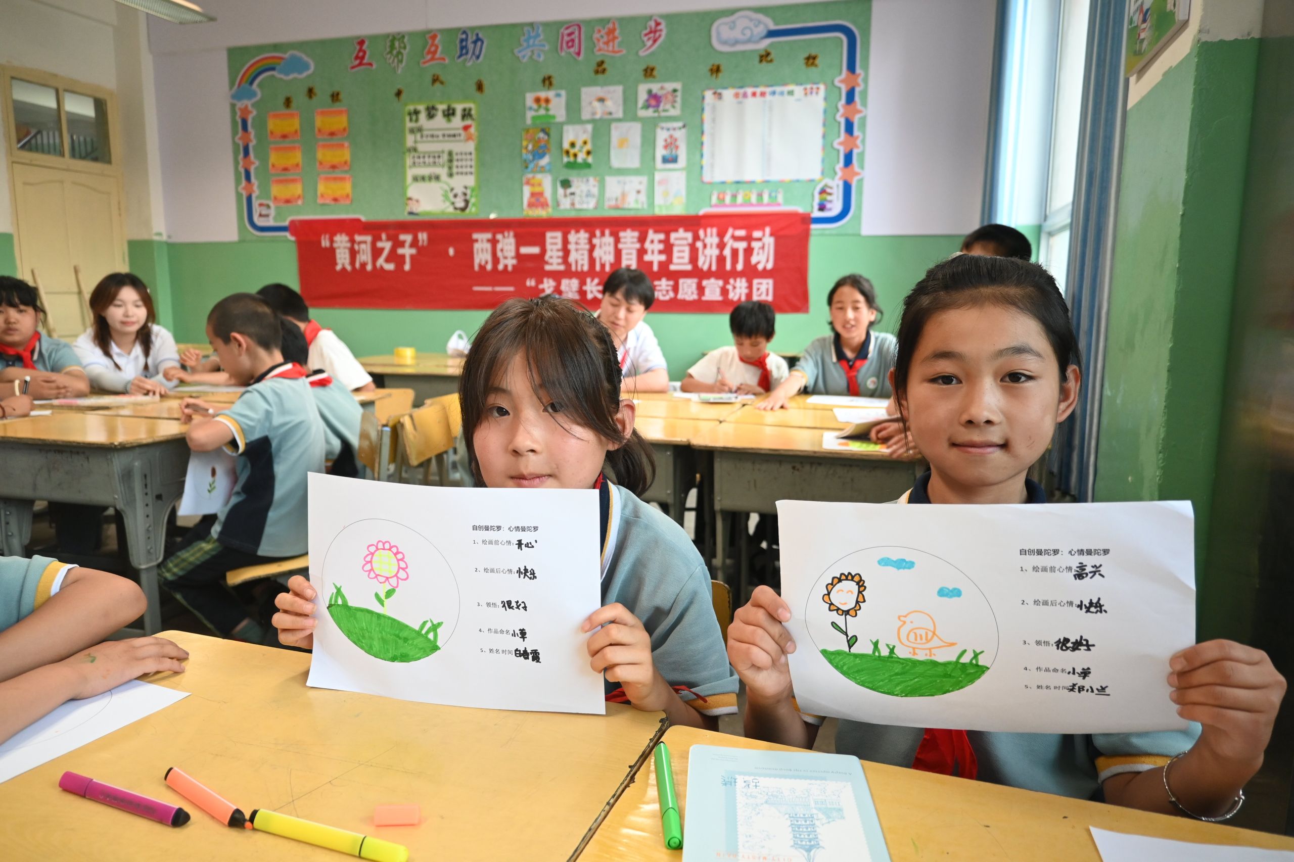 在锁南民族小学,“七彩云朵”团队精心打造“童梦彩翼”暑期成长营,重点服务东乡留守儿童。团队通过“色彩心情圈”、对称知识学习等趣味心理互动,拉近与孩子们的距离,在关怀与教育中启迪童心,厚植家国情怀。“星火传承”计划通过主题宣讲、互动游戏与心理绘画,生动讲述“两弹一星”元勋事迹,深化青少年爱国情怀与民族自豪感。“语翼振乡”行动则聚焦语言能力提升,利用绕口令比赛、“方言工坊”、“萝卜蹲”等游戏,巧妙破解语言关隘,有效提升了孩子们的普通话应用能力。团队成员还参观了校史馆,感悟百年民族教育历程和乡村教育工作者扎根奉献的“萤火虫精神”。