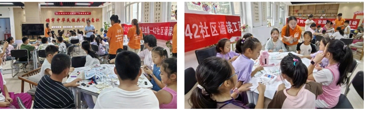 此外,活动还设置了多元板块:“科技DIY”手工制作,助力青少年创新思维提升;“非遗漆扇”活动中,志愿者的引导下,制作漆扇作品,感受传统工艺的魅力;“健康跳跳棋”以“健康知识”为关卡,让协作与快乐同行;“环保知识竞答”则通过趣味问答,将绿色理念播撒进幼小心田。