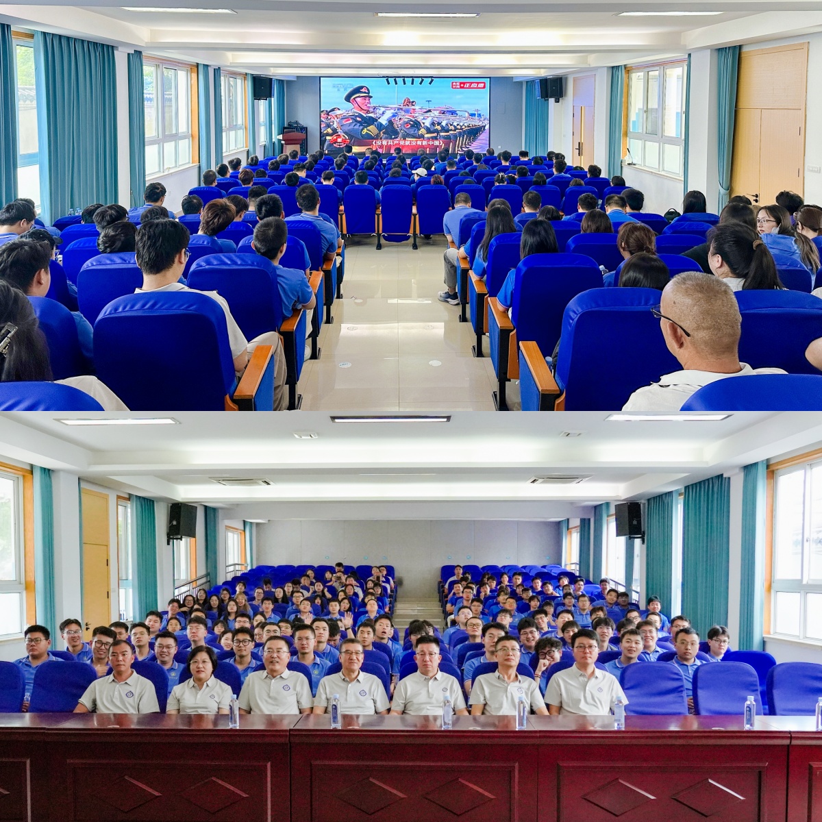 在研究院的大报告厅内,全体教职员工和研究生们聚集在屏幕前,共同见证这一庄严时刻。阅兵活动按照阅兵式、分列式两个步骤进行,空中护旗梯队由多型直升机组成多个编队,以护卫旗帜、编成字符、悬挂标语等方式,体现了在中国共产党的领导下,国家日益繁荣昌盛、军队不断发展壮大。天安门广场上,45个方队依次通过,代表着我军制胜现代战争的强大能力。看着屏幕中先进的军事装备和整齐划一的受阅方队,在场师生员工无不为之动容,共同感受这份民族自豪与历史使命,更感受到和平不易和祖国强大,爱国情怀油然而生。