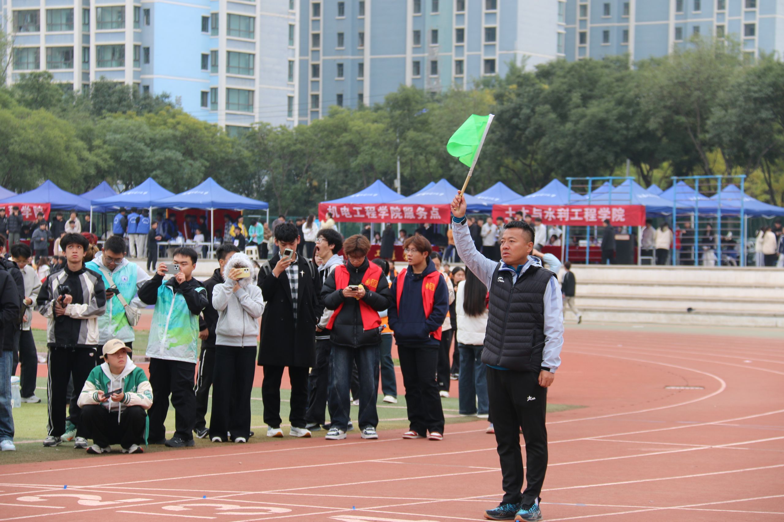 运动会的顺利开展,离不开裁判员团队的默默付出。他们或手持发令枪,凝神静气等待发令时刻;或紧盯终点线,目光专注地记录运动员冲线瞬间,确保计时精准;或在沙坑旁、投掷区边,认真丈量成绩,不放过任何一个细节。正是他们坚守“公平、公正、公开”的原则,以专业的执裁态度和严谨的工作作风,为运动会筑起了坚实的后盾,保障了各项赛事的有序进行。