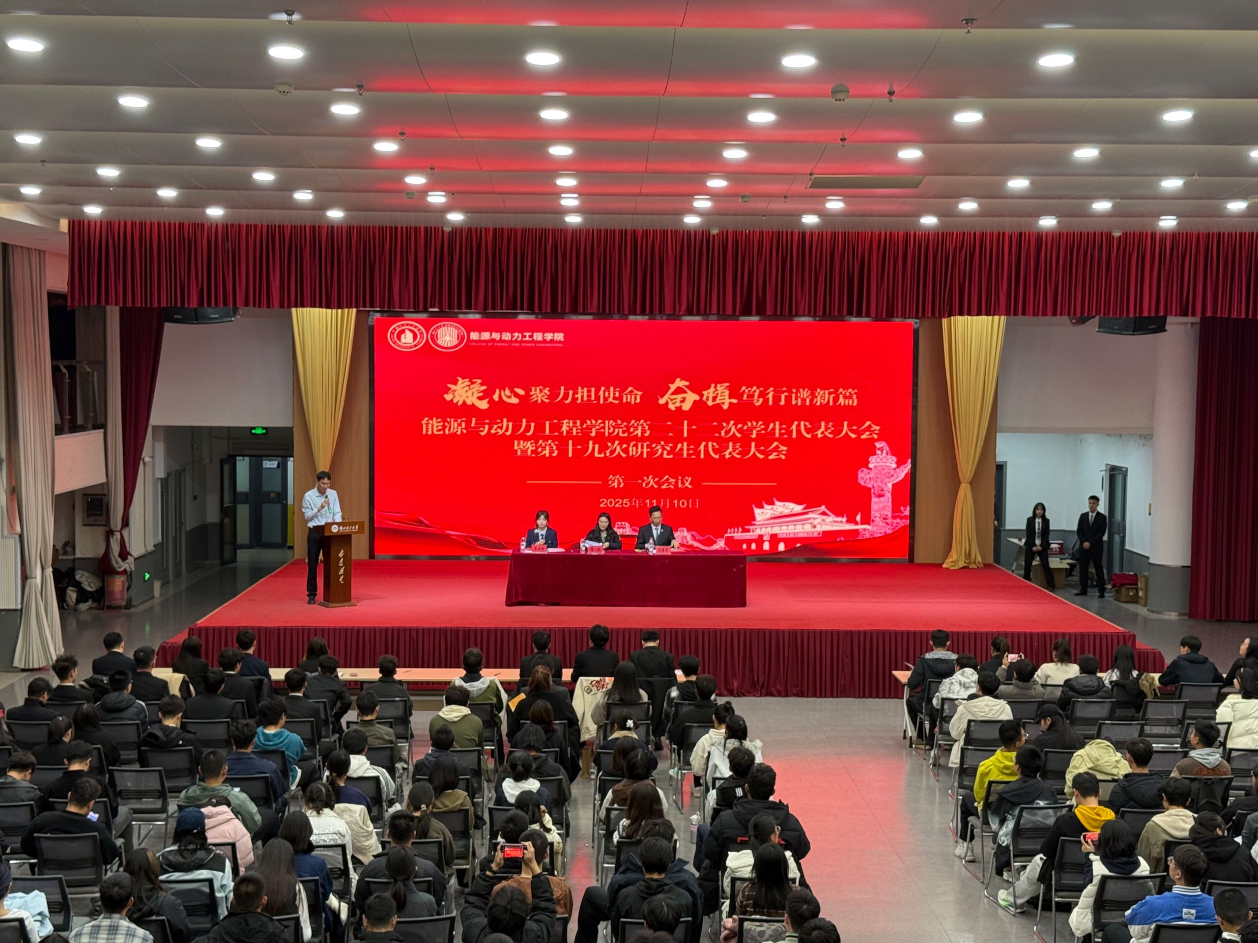 11月10日,能动学院召开第二十二次学生代表大会、第十九次研究生代表大会。学院党委副书记陈冲、校研究生会代表范景洋、校学生会代表李方洲,以及各学院团委书记代表和学生代表共计300余人参加。