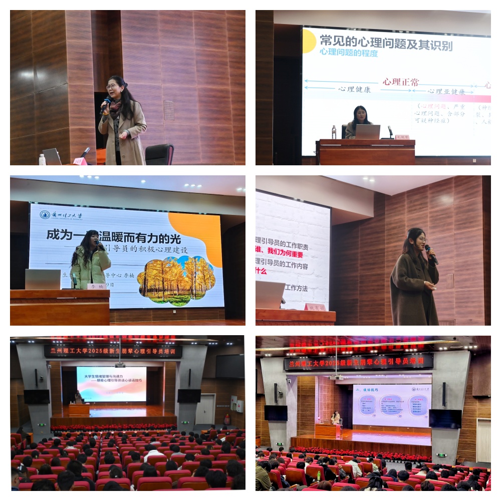为落实省教育厅《关于进一步加强秋季开学高校学生心理健康教育引导的工作提示》《兰州理工大学“一站式”学生社区综合管理模式建设实施方案》等文件精神,进一步加强我校心理健康服务体系,提升朋辈心理引导员的专业素养,11月9日,学生处开展了2025级新生朋辈心理引导员专题培训。