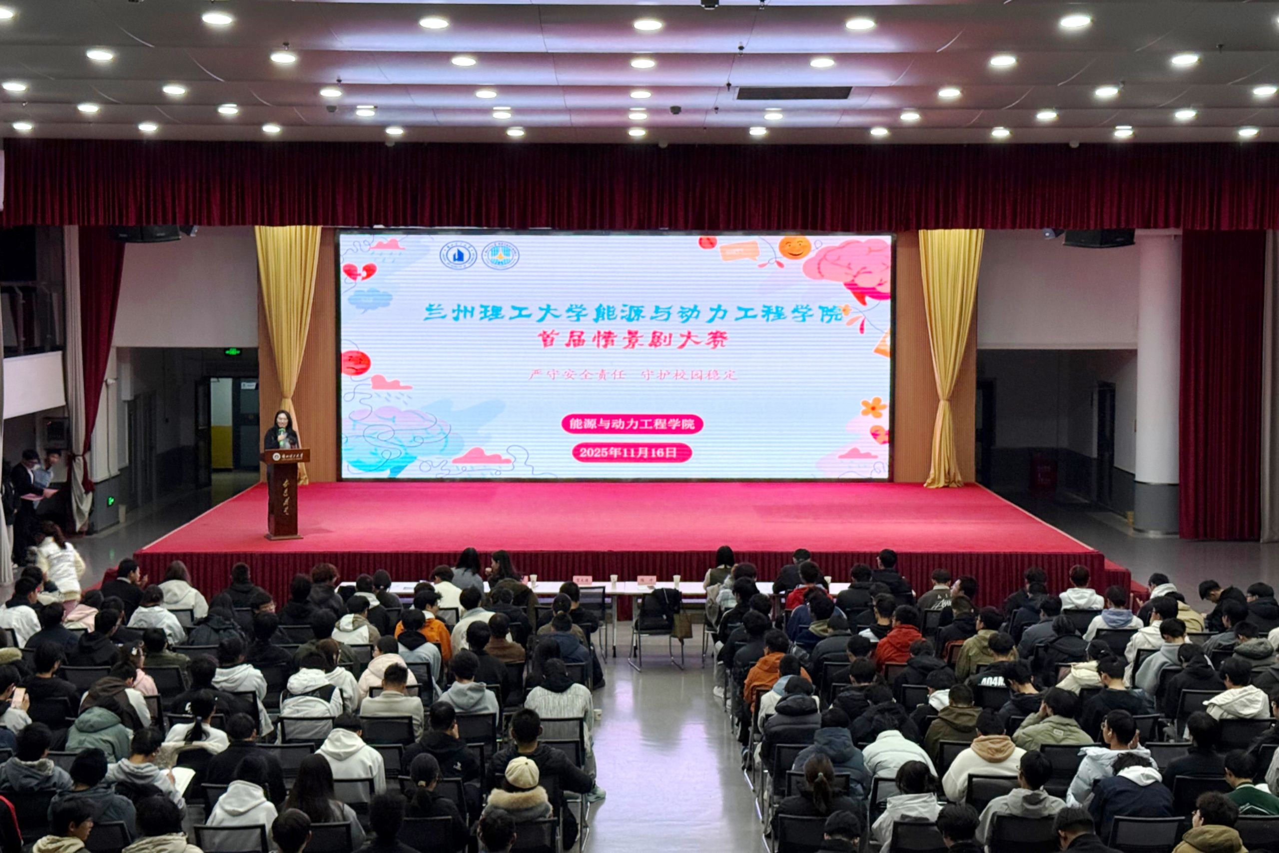 11月16日,能动学院举办题为“严守安全责任,守护校园稳定”的首届情景剧大赛。学院党委副书记陈冲、党委学生工作部心理发展指导中心主任孔艳赟、党委保卫工作部副科长宫文源,材料学院心理辅导站站长李双辰等老师担任评委,学院大一新生380余人参加。