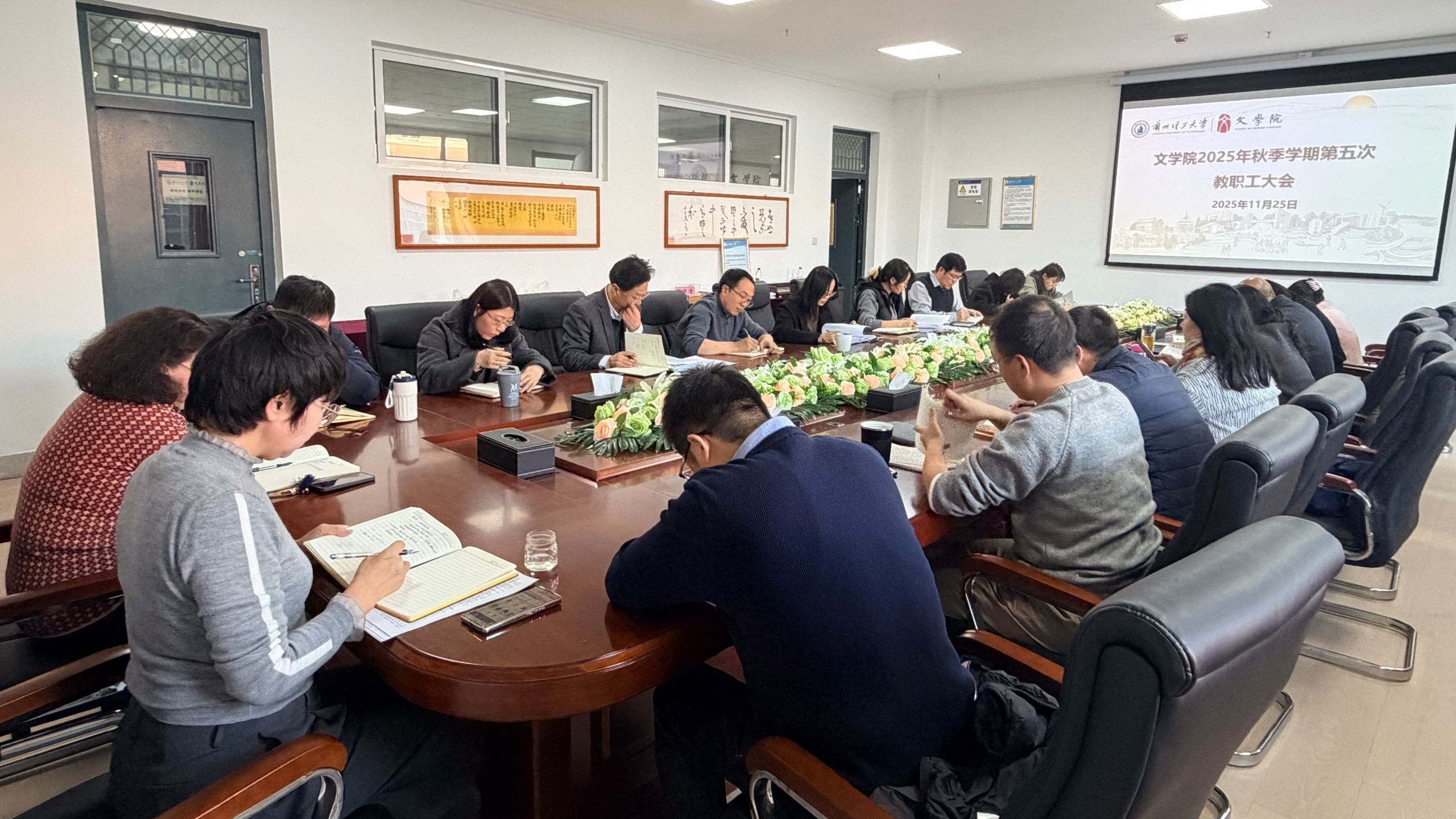 11月25日,文学院在学院会议室召开教职工集体学习会,专题学习党的二十届四中全会精神。会议由学院党委书记王祎敏主持,全体教职工参加。