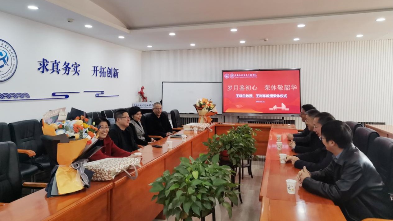 11月21日,自动化与电气工程学院在舒卷楼201会议室为王晓兰教授、王树东教授举行荣休仪式。学院领导班子成员、教师代表共同参加了会议。会议由院长李二超主持。