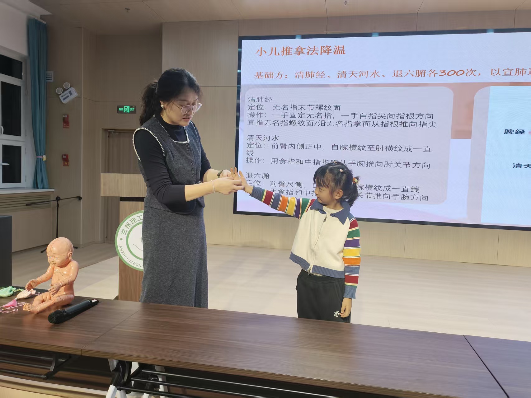 现场示范了儿童中医推拿、穴道按摩等疾病预防手段、方法,使家长们直观了解了中医在疾病预防工作中的重要性。帮助家长们了解各种常见传染病的相关知识,掌握各种传染病的预防方法,更好地通过家园携手,共同守护孩子的健康。