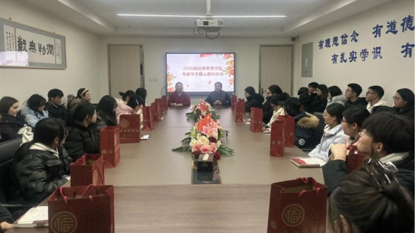 12月15日,经济管理学院举办2026届考研学生暖心慰问活动。学院党委副书记王翀、考研学生代表参加活动。