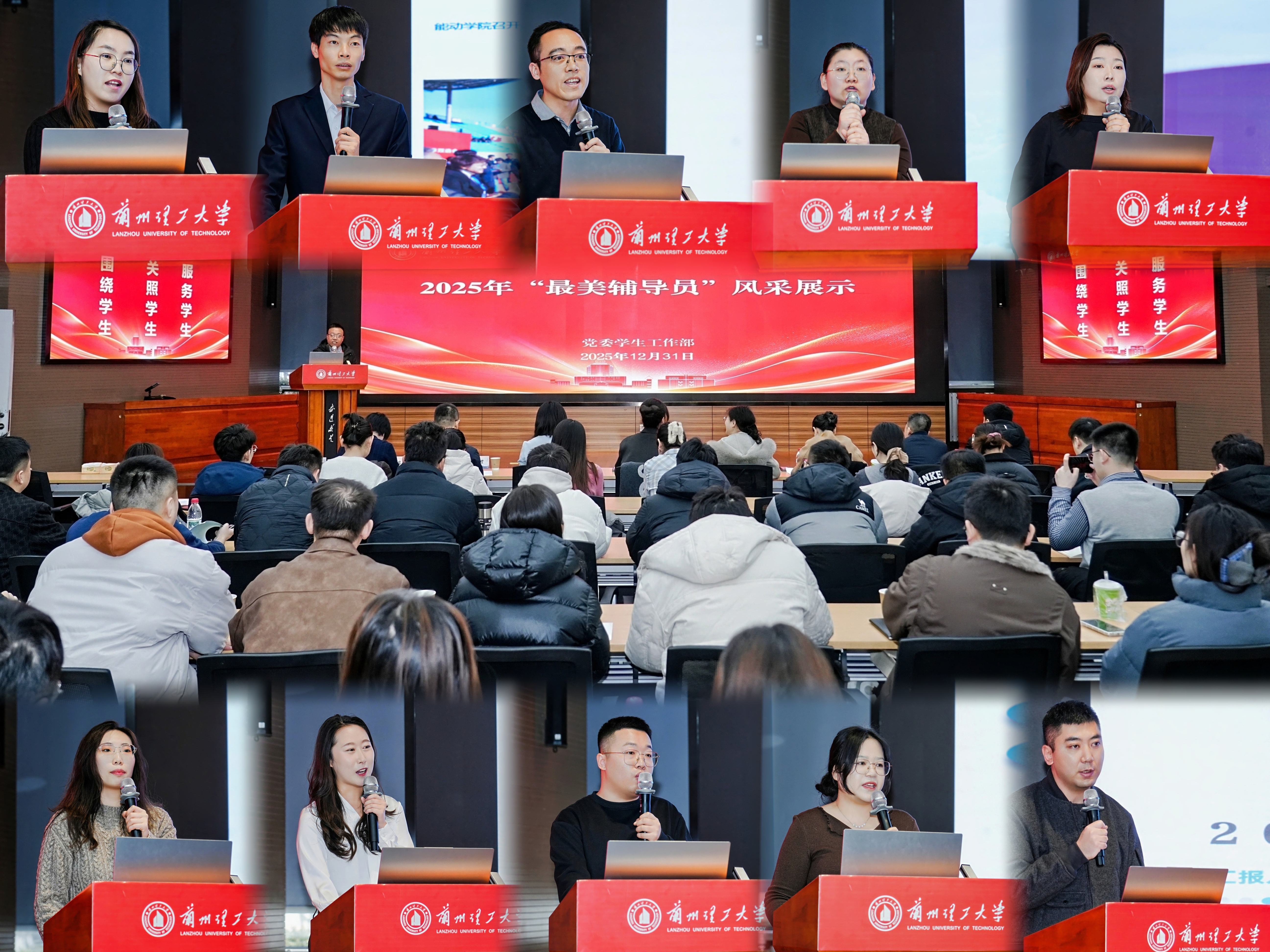 经学生测评、学院评议和学校评审等环节,共有16名辅导员进入风采展示阶段。展示过程中,辅导员们紧扣立德树人根本任务,围绕思政教育引领、党团班级建设、心理健康护航、学风建设赋能、就业精准帮扶、危机事件应对等核心职责,以翔实的数据、生动的讲述,分享了日常工作中平凡而鲜活、真挚而动人的育人故事,其中有成长的蜕变、温暖的陪伴,也有青春的见证、意外的惊喜,充分展现了我校辅导员以学生成长为中心、倾情奉献的育人智慧与情怀担当。经评审,最终确定10名辅导员为兰州理工大学2025年“最美辅导员”。