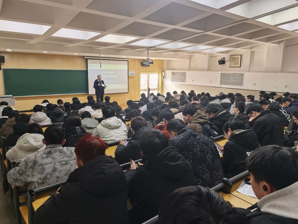 为切实筑牢寒假期间实验室安全防线,严格落实学校实验室安全管理工作要求,1月9日下午,材料学院召开了2026年寒假实验室安全教育培训会。学院副院长贾智主持会议,实验中心教师及寒假留校开展实验的200余名师生参会。