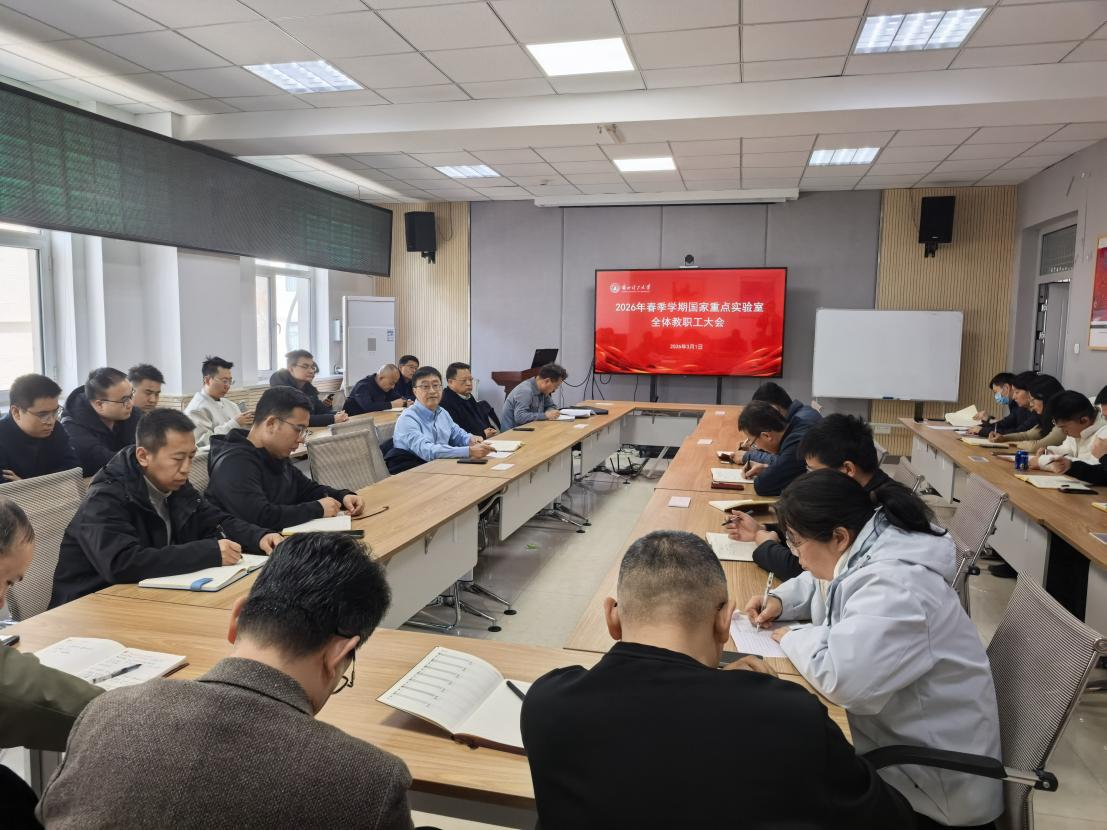 3月1日,省部共建有色金属先进加工与再利用国家重点实验室召开2026年春季学期全体教职工大会。全体教职工参会,会议由党总支书记张飞龙主持。