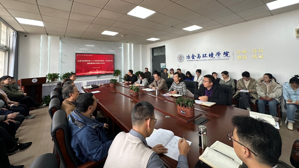 2月28日下午,冶金与环境学院召开2026年春季学期第一次全院教职工大会暨师德师风专题学习会议,全面安排新学期重点工作,并开展师德师风专题学习,进一步凝聚全院发展共识,明确新学期工作方向与行动要求。会议由学院党委书记赵霞主持。