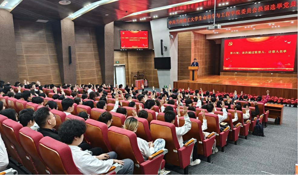 大会在庄严的国歌声中拉开帷幕。会上,工作人员宣读了中共兰州理工大学委员会《关于同意生命科学与工程学院党委召开党员大会进行党委委员会换届选举的批复》。学院党委书记常小军代表上一届党委作题为《锚定目标勇担当,笃行实干谋新篇》的工作报告,总结过去五年学院在基层党建、人才培养、学科建设、科研创新、社会服务等方面取得的工作成效,客观分析学院当前存在的问题以及面临的发展机遇与挑战,以“六大工程”为抓手,与班子团结一心,共谋学院未来发展。任海伟院长宣读了《生命科学与工程学院党委党员大会选举办法(草案)》。
