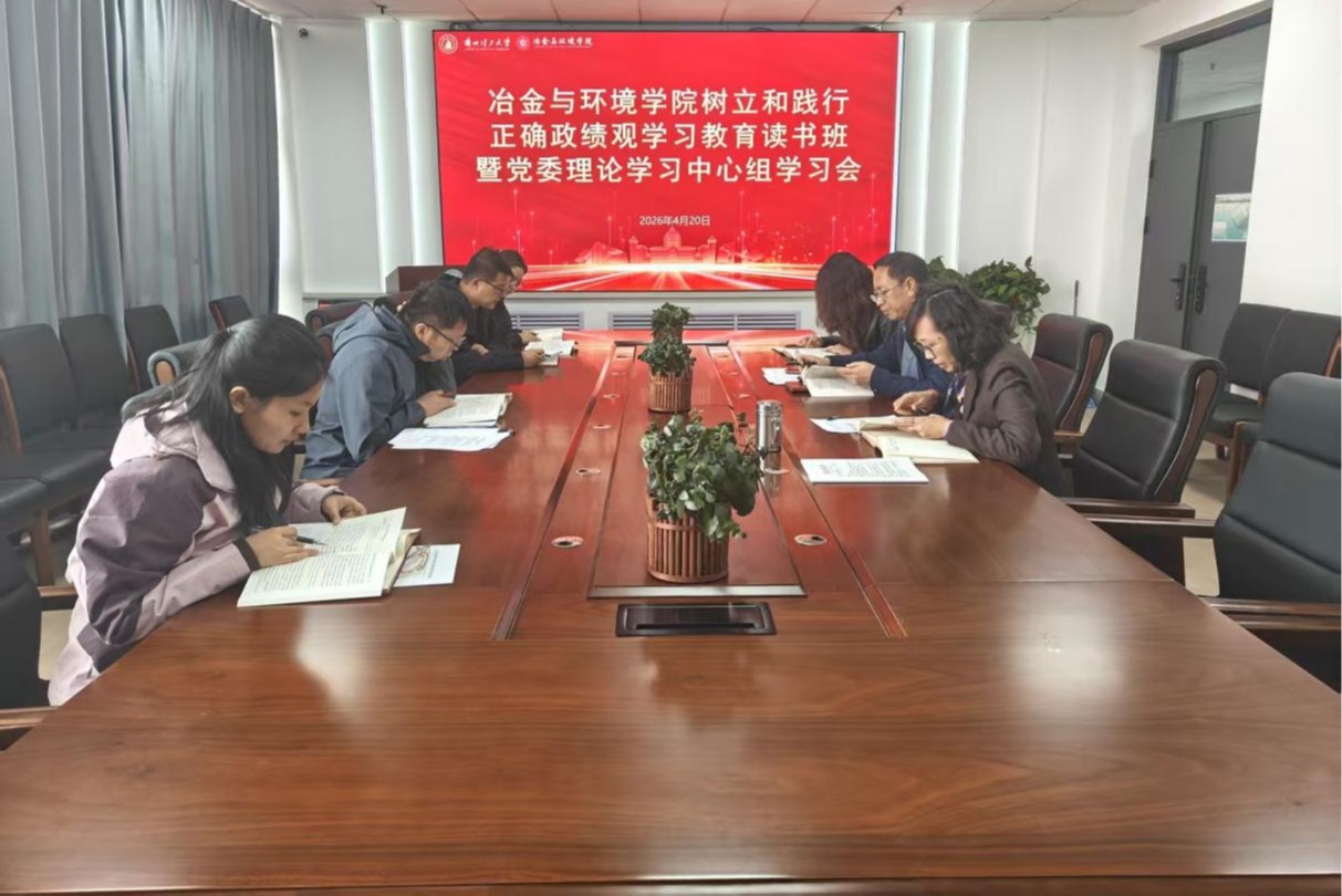 为深入学习贯彻习近平总书记关于树立和践行正确政绩观的重要论述,进一步提升党员干部的政治站位和责任担当,4月20日上午,冶金与环境学院在综合楼1609会议室召开树立和践行正确政绩观学习教育读书班暨党委理论学习中心组学习会。会议由学院党委书记赵霞主持,中心组全体成员参加学习。