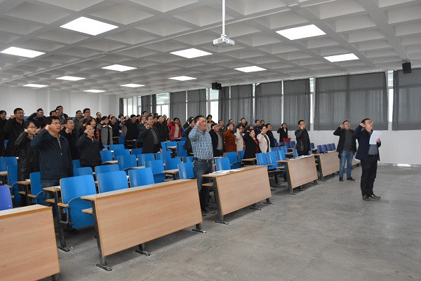 活动分为两个阶段:第一阶段为2019年2月26日下午组织全体教师进行了相关教育法律法规,并以教学基层组织为单位开展了深入研讨;第二阶段2019年3月5日下午,学院开展了“立师德、铸师魂,开学第一讲教师教育活动”第二次活动,活动由学院党委书记吴学楷主持,首先由土木学院副院长马天忠组织全体教职工学习了《新时代高校教师职业行为十项准则》、《教育部关于高校教师师德失范行为处理的指导意见》等相关文件。学习结束后,全体教工起立,由殷占忠副院长带领,举起右手庄严宣誓,“在教书育人过程中,做到坚定政治方向,自觉爱国守法,传播优秀文化,潜心教书育人,关心关爱学生,坚持言行雅正,遵守学术规范,秉持公平诚信,坚持廉洁自律,积极奉献社会;坚持立德树人根本任务,不断增强自身的责任感、使命感、荣誉感,提高法律意识,规范职业行为,明确师德底线,维护教师职业形象,提振师道尊严,努力成为有理想信念、有道德情操、有扎实学识、有仁爱之心”的好老师,着力培养德智体美劳全面发展的社会主义建设者和接班人”。老师们神情严肃,句句誓言铿锵。宣誓结束后全体教师签订了《师德师风承诺书》。