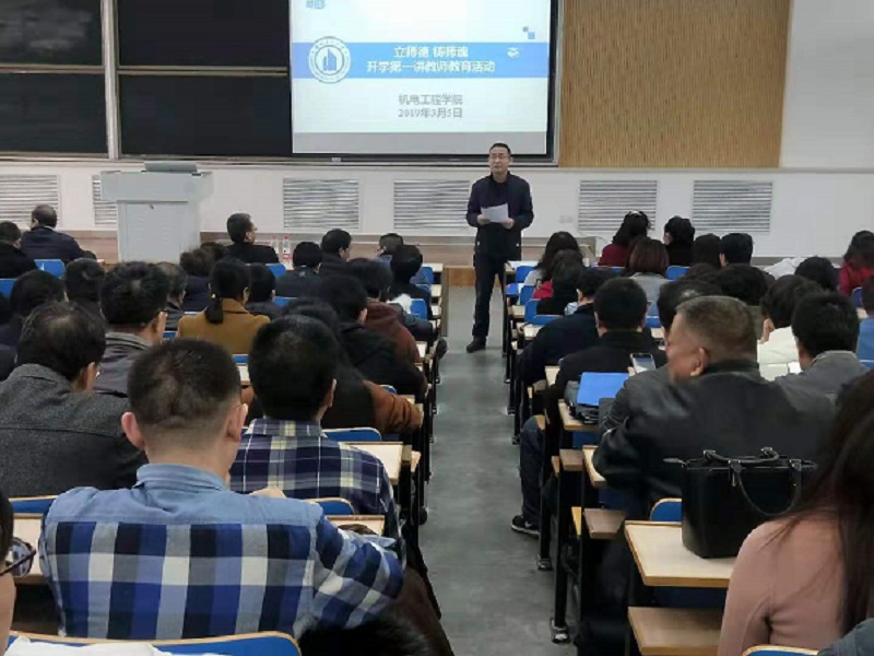 为进一步加强教师师德师风建设,规范教师职业行为,落实立德树人根本任务,根据省教育厅和学校“立师德 铸师魂 开学第一讲教师教育活动”的通知要求,3月5日下午,机电学院举行全体教师“立师德、铸师魂”开学第一讲教师教育活动。学校芮执元校长出席活动,教育活动大会由机电学院党委书记张君主持。