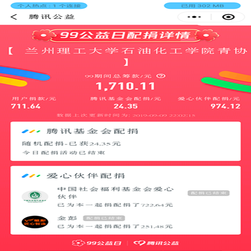 根据“志愿汇”平台提供的数据,共有221人参与此次活动,参与同学积极捐款、中国社会福利基金会等爱心伙伴配捐、腾讯基金会配捐共计筹备善款1700余元。