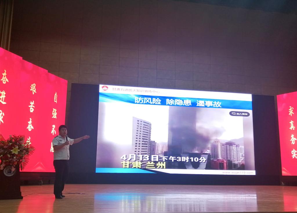 9月3日下午,校医院院长杨晓华、副主任医师郭爱军分别作题为《传染病防御及大学生医疗保险制度》《现场心肺复苏与常见急诊救护》讲座。帮助同学们提高传染病防范意识,掌握正确的疾病预防和急救方法。甘肃武警防火知识宣传中心付金科教官从消防知识宣讲、应急逃生疏散演练、常用灭火器材实用三个模块展开培训。邀请兰州市七里河公安局反电信网络诈骗大队宣传员朱毅斌警官为全体研究生做《教你如何防范电信网络诈骗》讲座,朱警官通过鲜活的案例介绍了十二种预防常见电信诈骗方式。提高了同学们的安全防患与信息保密意识。