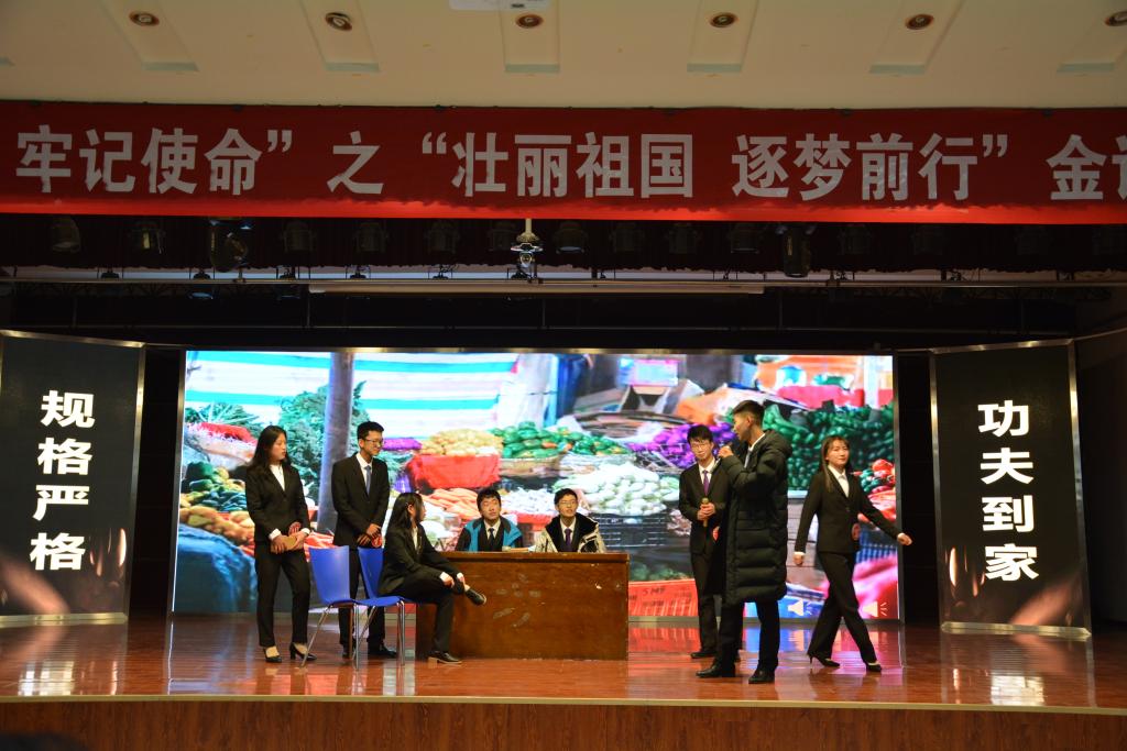 本场比赛分为模拟主持、才艺展示和妙语连珠三个环节。十位参赛选手生动表演的小品《社会人》为全场的观众演绎了一场视觉和听觉上的盛宴。模拟主持环节,十位选手两两分组互为搭档,针对迎新晚会、毕业典礼、运动会开幕式、深夜电台以及婚庆活动等五个内容进行模拟主持,极大的考验了选手们的基础素质和情景代入的能力。才艺展示环节,选手们尽显踔绝之能。“台上一分钟,台下十年功。”那声情并茂,婀娜多姿的背后皆是不为人知的汗水和付出。妙语连珠环节,选手们通过随机抽取的成语现场发挥,将成语变为优美的语段。最后,选手们齐唱《我和我的祖国》,共抒爱国情怀,一同祝福祖国70华诞。经过激烈的角逐,秦岭摘得本届金话筒主持人大赛的桂冠,李睿初和王明荣获二等奖,陈凡、程子枷,黄昊获得三等奖,陈轩、李甲军、钟欣雨,陈国丽获得优秀奖。李睿初获得最佳人气奖。