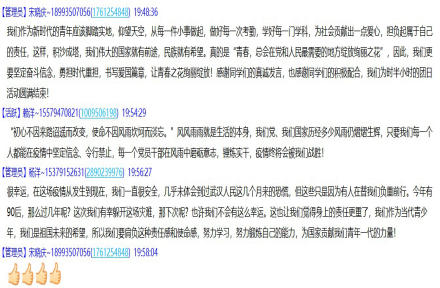 同学们坚信,经过抗“疫”战火淬炼的中国青年,一定能不惧风雨、勇挑重担,在党和人民最需要的地方绽放出更加绚丽的青春光芒!