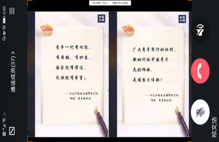 为积极响应校团委号召,在理学院党委的引领下,学院团委组织各基层团支部以班级为单位开展了“学习习近平总书记回信北大援鄂医疗队全体90后党员的信”主题团日活动,由班级团支书与班长共同组织召开,活动形式主要以线上会议、文件学习、分享撰写感想等形式开展。