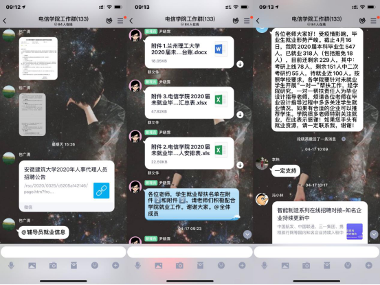 疫情发生后,学院迅速行动,第一时间发出《致电信学院全体师生的一封信》,引导全院师生关注疫情发展、配合防疫工作、增强防控信心。摸排寒假留校学生情况,解决留校学生的“吃、住、行、用”等实际问题,确保留校学生不被感染。辅导员、班主任迅速调整“休假状态”为“战时状态”,点对点联系掌握每名学生的健康状况,落实“日报告”“零报告”制度。全体辅导员坚守战疫一线,召开网上班会,精准指导学生成长,传达各项政策要求,做好学生的保障服务工作,为有需要的学生寄送笔记本电脑、三方就业协议、课本资料等。第一时间建立网课教学联动机制,通过教学联动卡、网课教学意见征集、网课考勤等方式,全力保障“听课不停学”;专题部署2020届毕业生就业工作,成立学院2020届未就业毕业生就业帮扶工作领导小组,确保毕业生就业工作稳步有序推进,最大限度降低疫情对毕业生就业创业工作的影响。