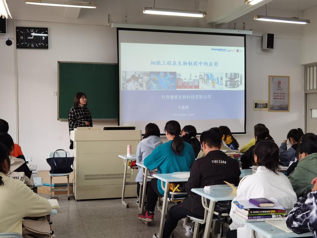 为了让学生更加了解本专业的应用领域,进一步增强专业自信,10月19日上午8:00,在彭家坪校区观成楼403教室,甘肃健顺生物科技有限公司的团队又一次走上了兰州理工大学的讲台,为20级生物工程1班本科生讲授了《生物工程导论》课程的生物企业专题讲座。讲座由班主任唐丹老师主持,健顺生物销售部副总监耿风廷、研发部高级经理王嘉琪、人力资源部的高级经理樊丽、主管石璇璞和高级专员罗茜以及20级生物工程1班全体同学参加了本次讲座。