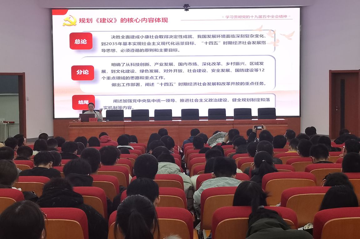 此次学习贯彻党的十九届五中全会精神宣讲会全方位、多角度宣传十九届五中全会精神,学院青年学生进一步加深对党的十九届五中全会内容的理解,切实提高政治理论素养,弘扬奋进精神,并将全会精神内化于心、外化于行,以更饱满的热情投身于接下来的学习和生活当中,以新时代青年昂扬向上的精神风貌和奋发有为的蓬勃朝气,在学习中创新贯彻落实具体举措,为全面建设社会主义现代化强国汇聚更多的青春力量。