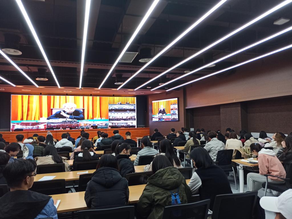 学校党委常委、纪委书记李香枫指出,在以习近平同志为核心的党中央坚强领导下,“十三五”我国社会主义事业各方面建设取得了突出成就,全面建成小康社会胜利在望。站在“两个一百年”奋斗目标的历史交汇点上,全会重点研究“十四五”规划问题,审议通过的《建议》是夺取全面建设社会主义现代化国家新胜利的纲领性文件,为实现第二个百年奋斗目标、实现中华民族伟大复兴的中国梦奠定了重要基础。法学院全体领导都是年轻干部,要当好表率,把学习贯彻全会精神作为当前和今后一个时期的重要政治任务,真正学深悟透,引领学院师生进一步把思想和行动统一到党的十九届五中全会精神上来,勠力同心,真抓实干,推动学院事业更高质量发展。老师们纷纷表示,在以习近平同志为核心的党中央坚强领导下,我国各项事业迈上新台阶,尤其是在抗击新冠肺炎疫情期间,中国共产党的领导和我国社会主义制度的优势进一步彰显,取得了统筹疫情防控和经济社会发展的重大战略成果。教师党总支书记白小平表示,党的十九届五中全会进一步系统分析当前国内外面临的新机遇、新挑战,也摹画了我国教育工作的发展蓝图。面对更加错综复杂的国内国际环境,在对未来充满了信心和期待的同时,要充分认识到肩上的责任和使命,立德树人,在“两个一百年”奋斗目标交汇之际,承担好为党育人、为国育才的使命,贯彻新发展理念,引领学生筑牢理想信念,坚定“四个自信”,肩负强国使命。研究生党支部副书记孙小凡感言,五中全会有关保障民生的一系列重要举措令人印象深刻,一系列与老百姓利益切身相关的举措,彰显了党和国家始终关注着人民的关注,一笔笔描绘出人民群众美好生活的宏伟蓝图。”学生党员赵天玮表示一个人的理想只有同国家的前途和民族的命运相结合才有价值,新时代青年只有胸怀忧国忧民之心、爱国爱民之情,才能准确定位自己的人生目标和奋斗方向。许达成同学认为作为兰理工学子,研究生党员,要继承发扬“红柳”精神,充分发挥党员先锋引领作用,充分学习贯彻党的十九届五中全会精神,准确定位自己的人生目标和奋斗方向,自觉将个人的职业规划和理想目标融入到全面建设社会主义现代化国家新征程。法学院党委书记张艳在总结发言中鼓励研究生党员认真学习领会党的十九届五中全会精神,充分适应新发展阶段,深入贯彻新发展理念,推动构建新发展格局,将五中全会精神贯彻于自己的学业生活和工作中,为迎接建党百年、“十四五”规划顺利开局和2035年远景目标的实现做出新时代青年学生党员应有的贡献!