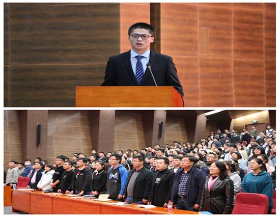 党员学生代表王升顺发起践行做合格党员的倡议,并带领全体党员同学宣读倡议,在场的每一位党员都郑重承诺积极践行做一名合格党员。