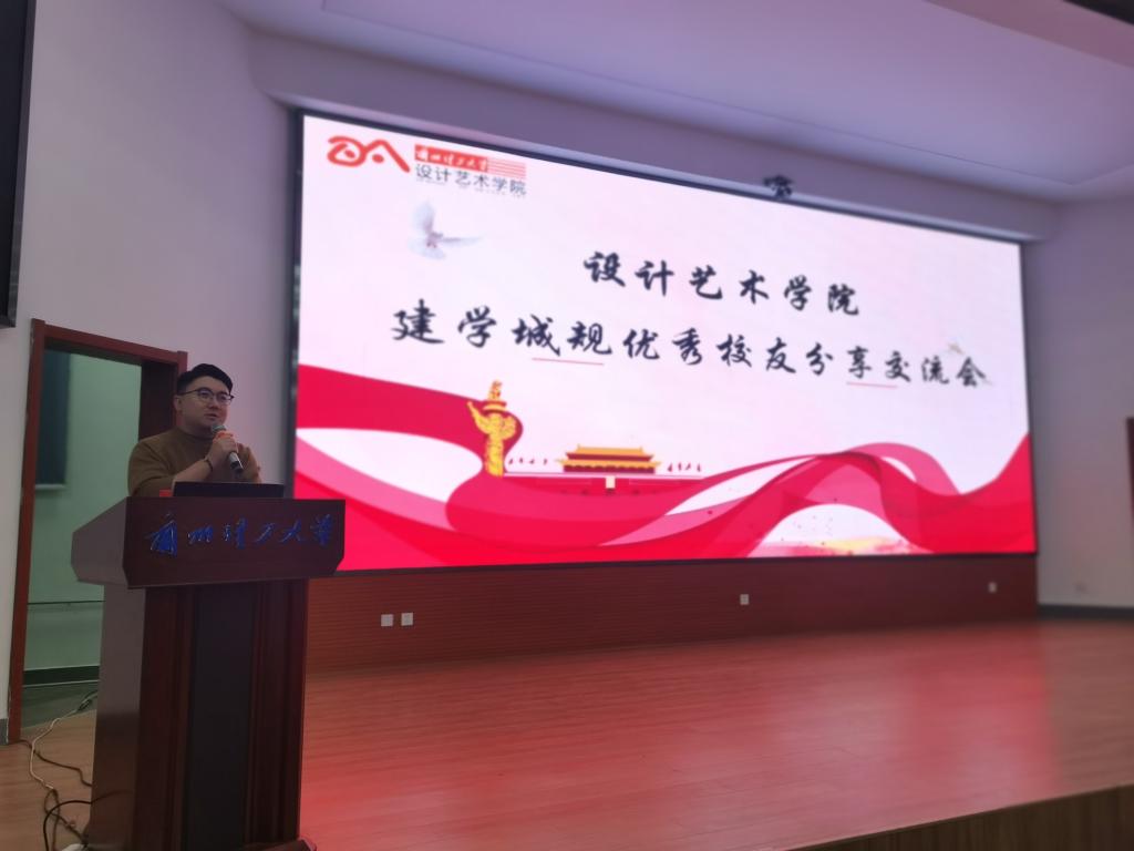 12月24日,设计艺术学院在图书馆二楼报告厅举办了“优秀校友交流会”,会议邀请到2010级优秀校友徐先成,参加此次活动的有建筑学和城乡规划专业200余名学生。