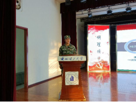 接着,唐洪川主任为同学们做了国防教育专题报告,从我国周边环境到大学生征兵工作流程,进行了详细地讲解,深刻阐释了国防建设的重要性。他强调:“好儿女,当兵报国;大学生,军营建功!”唐主任在本次讲座中以激情澎湃又不失幽默的语言,深入浅出的讲解,使会场的同学不仅对国防有了深刻的理解,更拓展了视野,增长了见识,极大的激发了同学们的爱国热情和立志成材报效祖国的决心。最后安老师总结发言并鼓励大家:“当代大学生应该勇于吃苦,敢于吃苦,我相信,军旗飘荡的地方也将是你们人生成功的地方。”