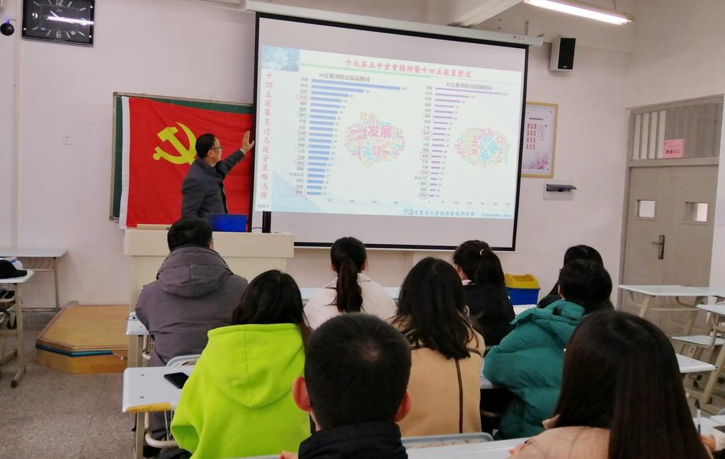 为积极响应学习贯彻党的十九届五中全会精神热潮,12月1日,经济管理学院李鸿渐副院长带领金融学本科生党支部集体学习十九届五中全会精神。金融学本科生支部全体党员参加。