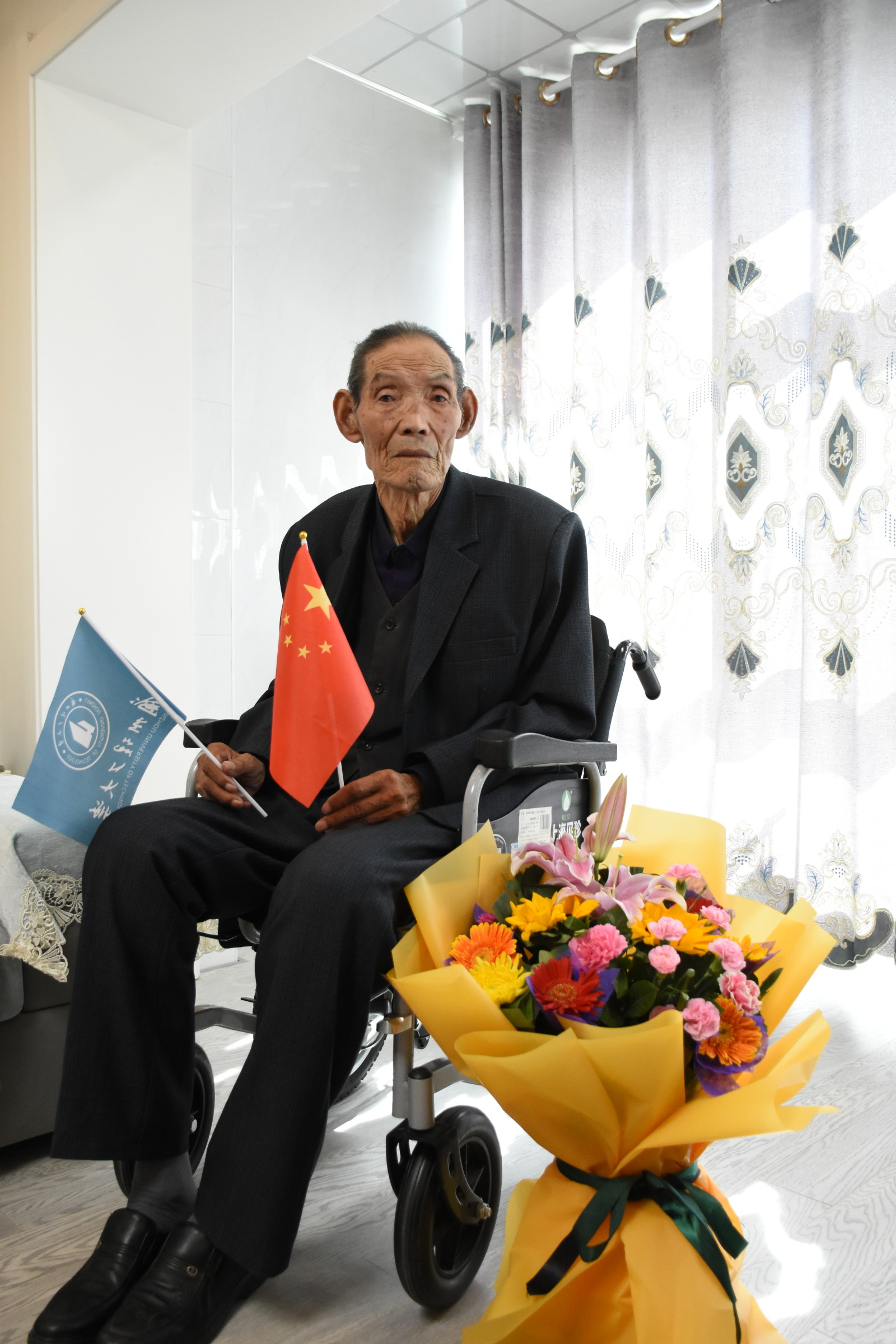 在这次寻访中,志愿者为李存保老人送上鲜花、祝福信和生活用品,坐在老人身旁,听老人回忆抗美援朝的点点滴滴。李存保老人今年90岁高龄,但仍然精神矍铄的跟志愿者讲述抗美援朝的红色故事:老人18岁入伍,于1952年入党,1952年底下开了雪穿着“四毛”(皮帽子、皮手套、皮大衣、皮鞋)前往朝鲜。在零下四十度的冬天赤身下到河沟里探路,饿了就吃炒的干面,边吃边就着雪,身上随时背着手榴弹,最后一颗是留给自己的,宁死不投降。交流中,老人说:“党员要带头起模范作用,打仗党员冲锋在前;我们要一不怕死,二不怕苦。” 听完老人的讲述,志愿者们的内心久久不能平静,老人的爱国情、报国志深深地感染着在场的每一名志愿者。