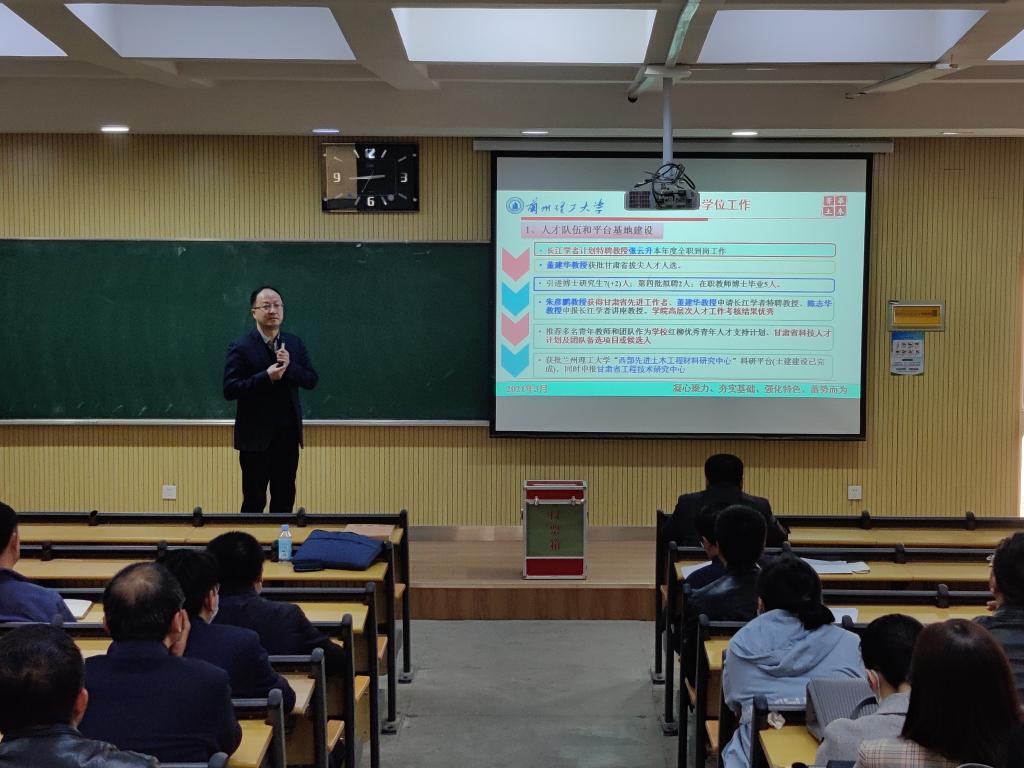 3月17日下午,土木工程学院在兰工坪校区崇理楼302教室召开了第四届一次教职工大会,学院全体教职工参加了大会。会议由学院党委书记田治学主持。