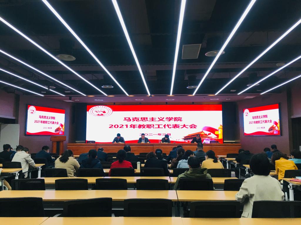 3月16日下午,马克思主义学院2021年度教职工代表大会在西校区图书馆一楼报告厅召开,学院院长饶旭鹏、副院长朱长兵及全体教职工参加了本次会议,会议由学院党委书记马凤英主持。