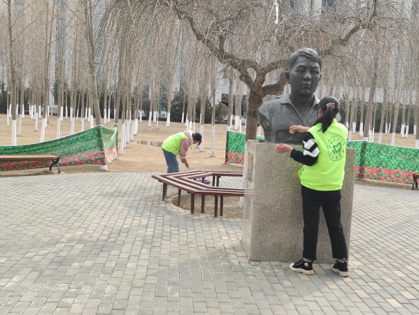 下午两时许,参加本次清扫活动的志愿者们相继到达广场,清扫开始。志愿者有的自带扫帚,清扫广场地面,有的手执毛巾,擦洗广场内设立的魏玉川雕像。一个小时过去,广场渐渐变得干净整洁起来。清扫结束,志愿者们集体向魏玉川学长雕塑鞠躬,以示怀念。本次活动虽然内容简单,但志愿者们并无一丝懈怠。