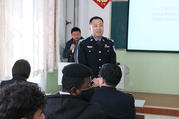 4月14日下午,为进一步提升国际学生遵纪守法意识,有效防范电信诈骗,切实保障国际学生合法权益和生命财产安全,国际教育学院邀请兰州市公安局出入境管理处、兰州市公安局反电诈中心民警,采用“线上+线下”相结合的方式开展了2021年春季学期法律法规宣讲及预防电信诈骗安全教育大会。