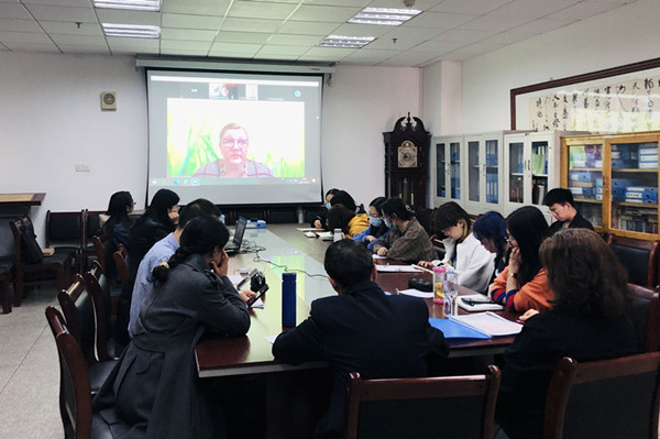 4月15日,兰州理工大学外国语学院与乌克兰卢甘斯克国立大学世界文学与俄语语言学教研室联合举办国际学术会议,本次会议以《尼古拉·古米廖夫:已知与未知》为主题,通过Zoom云视频线上召开。外国语学院俄语系全体教师及高年级学生在综合楼学院会议室参加了会议。会议使用语言为俄语,由乌克兰卢甘斯克国立大学外语系副主任奥莉加·亚历山德拉夫娜教授主持。来自中国、俄罗斯、乌克兰高校的10位学者进行了报告。