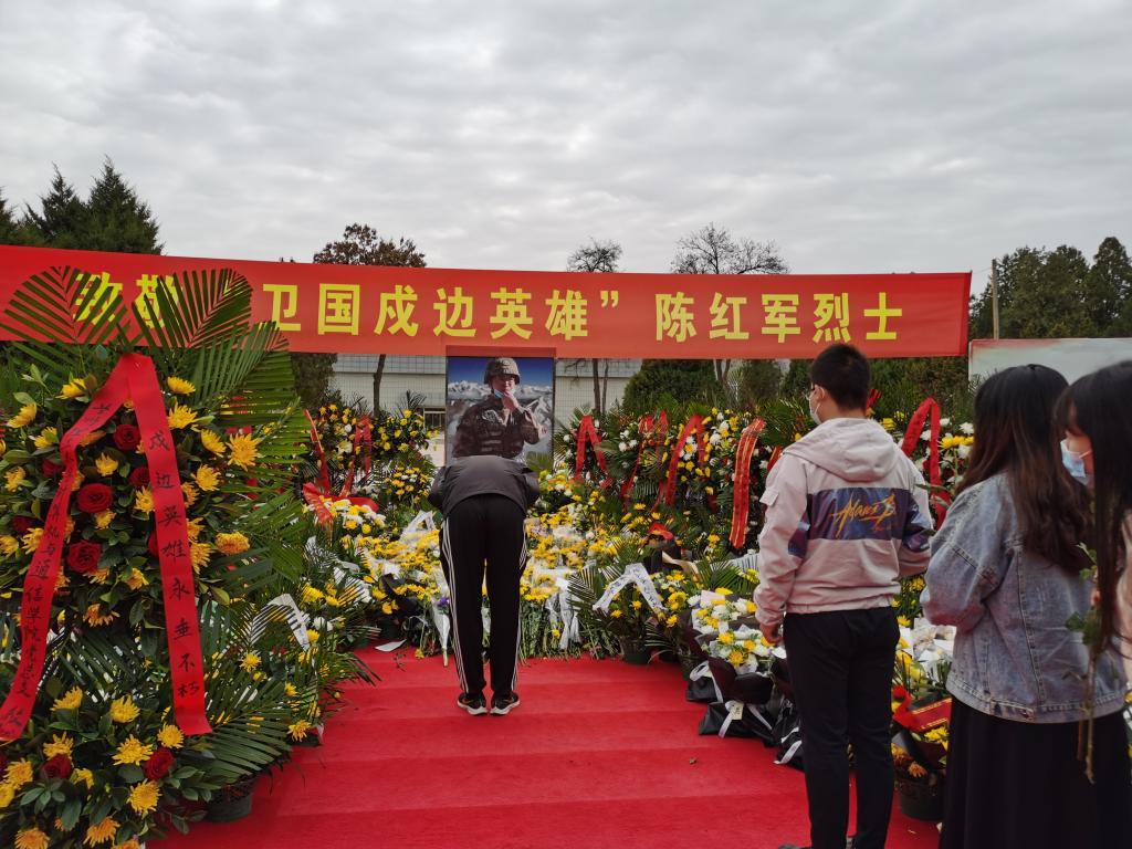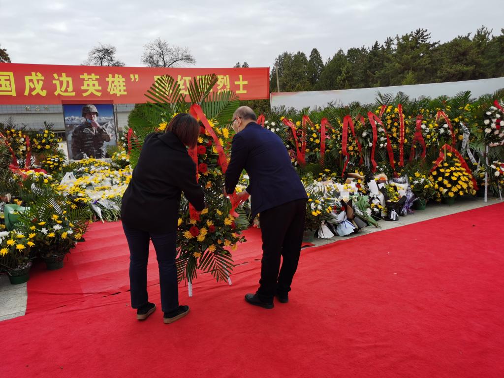 山川苍翠,松柏含悲,烈士陵园内庄严肃穆,学院党员师生们首先来到了“卫国戍边英雄”陈红军烈士的大型遗像前,向陈红军烈士敬献花蓝,全体党员肃立脱帽,向烈士行三鞠躬礼,瞻仰烈士遗像并默哀。随后,党员们依次有序地向陈红军烈士的大型遗像前献花行礼致敬,深切表达对英雄的崇敬和缅怀之情。