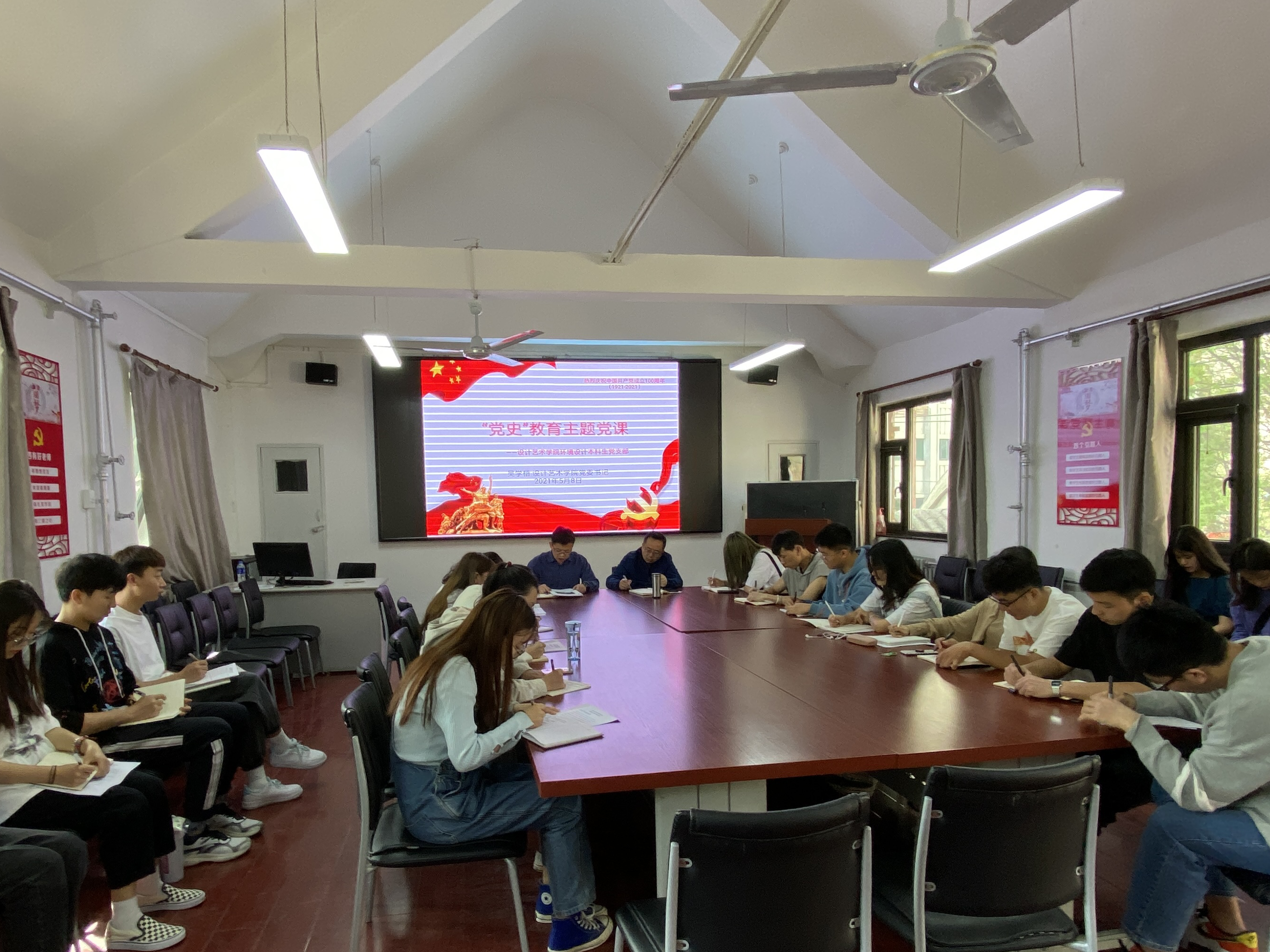 近期,设计艺术学院在学生党支部开展党史学习教育专题党课活动。5月8日上午,学院党委书记吴学楷参加了环境设计本科生党支部“党史教育主题党课”活动,并为支部党员和发展对象上党课。活动由环境设计本科生党支部书记马俊主持,支部全体党员和发展对象参加。