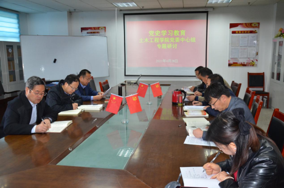 4月28日上午,按照学校党委党史学习教育安排,土木学院党委理论学习中心组在集中学习和自学的基础上,就中国共产党简史(新民主主义革命历史时期)部分进行开展了专题研讨。会议由党委书记田治学同志主持,中心组全体成员参加了会议。